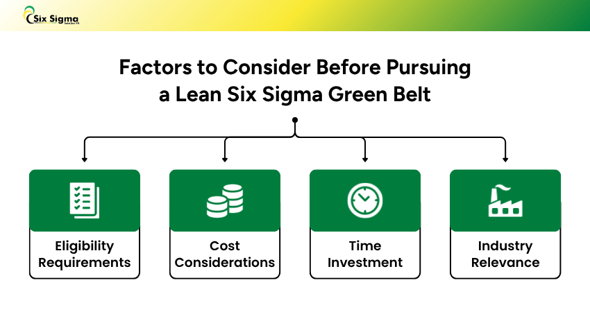 Before committing to the certification, it is important to assess whether it fits your time, budget, and career goals. While the benefits are strong, making an informed decision ensures you gain the most value. Let’s look at the key factors to consider before pursuing the green belt below: